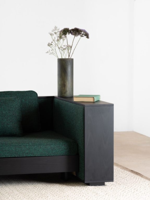 La conception de Kobold est rigoureuse, d’un côté le meuble, de l’autre le siège, deux métiers historiques de Cinna : Le meuble c’est les structures et les rangements, entièrement réalisés en bois et ses dérivés. Le siège c’est la garniture et les textiles.