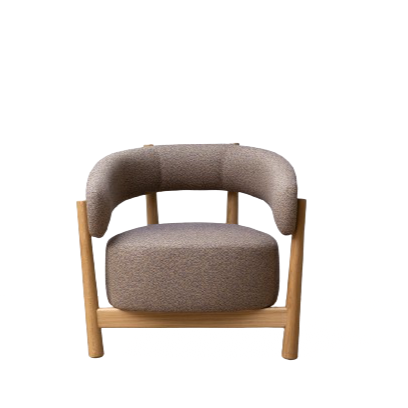 L’assise invite à s’offrir des moments suspendus ; les accoudoirs, prolongements du dossier arrondi, épousent les courbes du corps avec une douceur presque organique. Son piètement en chêne ou frêne massifs apparent renforce l’équilibre des proportions, entre confort profond et rigueur formelle