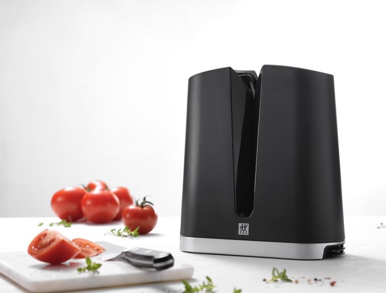 « De nouveaux accessoires existent pour effectuer l’opération très facilement. Ainsi Zwilling propose le « V-Edge », qui permet de régler l’angle d’aiguisage et donc d’aiguiser tous les couteaux, y compris les modèles japonais comme ceux de la marque Miyabi, note Nathalie Chabert, de Zwilling Staub France. Le « V-Edge » intègre plusieurs pierres préinstallées et donne la possibilité de moduler l’outil en fonction de la gravité de l’usure ». Grâce à cette innovation, l’aiguiseur de couteaux tient bien en main et redonne leur tranchant d’origine à tout type de lames. Le « V-Edge » fonctionne avec les surfaces d’affûtage en céramique et aiguise les couteaux rapidement, en toute sécurité et de manière uniforme, avec fiabilité et confort. Il permet d’aiguiser ses couteaux comme des pros.