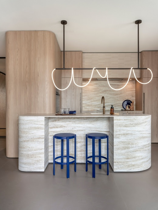 Fruit d’une personnalisation minutieuse visant à maximiser l’espace, l’îlot de cuisine est l’élément central de la pièce. Ses lignes circulaires intègrent harmonieusement forme et fonctionnalité et ajoutent une dimension unique au volume de l’espace. Il démontre l’efficacité d’une conception réfléchie, réalisée avec un matériau de haute qualité.