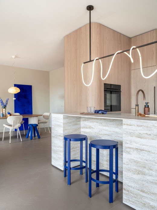 Pour l’architecte d’intérieur néerlandaise Babbet Duijkers, l’objectif pour ce projet été d’insuffler de la vie dans chaque espace de l’appartement. Elle a donc soigneusement repensé chaque élément en optant pour un design simple et des matériaux naturels, réhaussés par des touches originales telles que les luminaires ou le coloris bleu cobalt du mobilier.