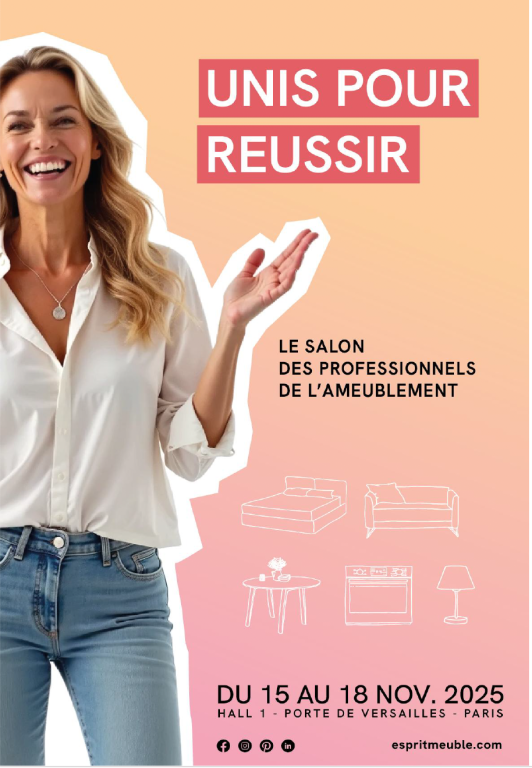 EspritMeuble est un salon né de l’initiative de plusieurs industriels de l’ameublement. Ils se sont unis pour créer le rendez-vous des professionnels de l’ameublement, conciliant business et convivialité. La manifestation permet à tous les professionnels du secteur de se retrouver chaque année dans un cadre premium et convivial, pour échanger, développer leur business, faire la promotion ou découvrir les dernières innovations, tendances et collections en matière de meubles, canapés, salons, literies, cuisines, électroménagers, salle de bain et décoration. Pour sa 13e édition, le salon place la barre haut. Sous la bannière fédératrice « Unis pour Réussir », le salon entend répondre aux défis d’un marché en profonde transformation en réunissant fabricants, distributeurs et prescripteurs autour de solutions concrètes et durables. En novembre prochain c’est donc plus de 400 marques françaises et européennes qui investiront les allées du Pavillon 1 du parc des expositions de la Porte de Versailles, pour aller à la rencontre de quelque 14 000 visiteurs professionnels, dont 2 500 issus du secteur contract. « Plus que jamais, fabricants et distributeurs ont besoin de se rassembler pour avancer. EspritMeuble est un catalyseur de ces synergies », souligne Gaëtan Ménard, président du salon.