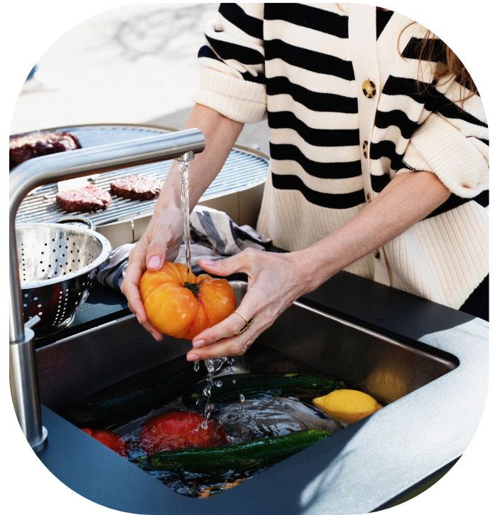 JEAN se décline en deux options : un évier et/ou une plaque de cuisson Adventys. Ainsi, le jardin se transforme en un véritable espace de vie, sans devoir faire des va-et-vient à l’intérieur. Comme toujours chez Aluvy, chaque pièce est fabriquée sur commande et livrée sous 5 à 10 jours ouvrés.