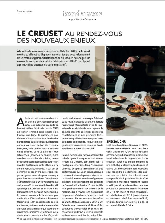 À la veille de son centenaire qui sera célébré en 2025, Le Creuset montre qu’elle est au diapason avec son temps, avec le lancement de sa première gamme d’ustensiles de cuisson en céramique. Un ensemble complet de produits fabriqués sans PFAS qui répond aux nouvelles attentes de consommation.