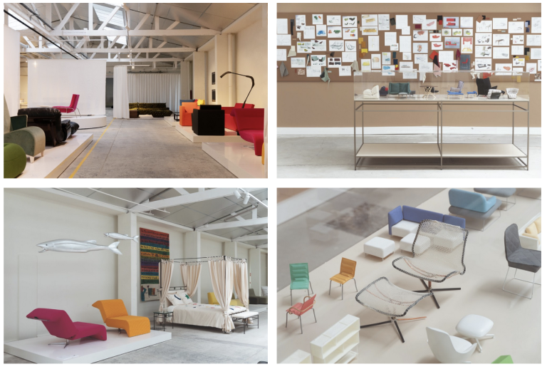 Un espace historique, dont une partie didactique, sera dédiée à la production, permettant aux visiteurs de se plonger dans l’histoire industrielle du site. Une autre section présentera des pièces emblématiques, depuis les années 70, retraçant l’évolution des marques Ligne Roset et Cinna à travers leurs produits, dont certains n’ont que rarement été présentés au public. En plus de la collection permanente, de nouvelles pièces seront exposées puis renouvelées chaque année. Pour cette première scénographie, 42 pièces seront mises en avant, parmi lesquelles des créations emblématiques telles que : le lit à baldaquin ASTARAC de Jean-Charles de Castelbajac, le fauteuil ELEMENTAIRE de Jean Nouvel, le meuble semainier de Elizabeth Garouste et Mattia Bonetti ou encore une petite chaise haute de Philippe Stark, certaines pièces étant assez rares.