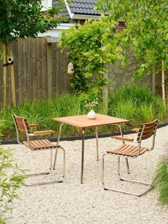 La collection S 40/S 1040 (Mart Stam/Thonet Design Team) fait également partie de la série Thonet Outdoor : des piètements en acier inoxydable y sont associés à des lamelles en iroko, un bois africain à haute densité, huilé pour encore mieux résister aux intempéries.