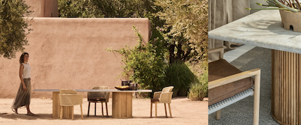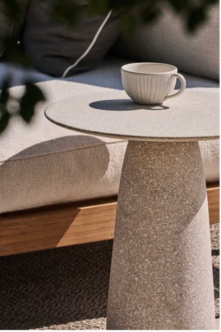 De sculpture, il en est également question lorsque l’on regarde le bout de canapé « Dunes », initialement conçu en teck par Yabu Pushelberg, qui nous offre cette saison une version en Terrazzo. Avec son design ultra-épuré, il devient un objet aussi décoratif que fonctionnel, qui, grâce à sa nouvelle finition Terrazzo, ajoutera une touche de sophistication à n’importe quel espace extérieur..
