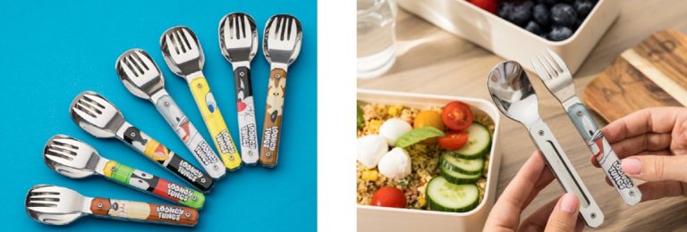 Akinod, la marque française des couverts nomades qui encourage tout un chacun à retrouver le plaisir de repas bons et sains n’importe où mais pas n’importe comment s’illustre à travers un tout nouveau partenariat ludique et coloré autour des héros des dessins animés Looney Tunes : Bugs Bunny, Titi et Gros Minet, Dafy Duck ou bien encore Bip Bip Le Coyotte pour ne citer que les plus célèbres d’entre eux (ils sont 8 au total !) ont ainsi pris place sur la version « mini » des couverts Akinod (d’une taille de 30% inférieure aux modèles standard de la marque).
