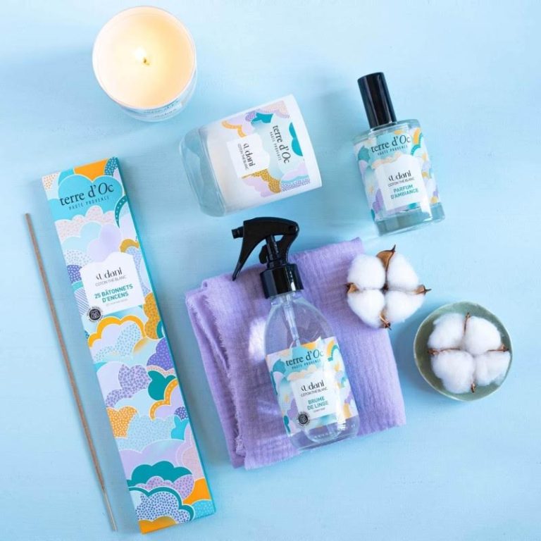 Cette nouvelle collection de parfums d’intérieur naturels, est née de la rencontre de femmes toutes installées en Provence. À leur échelle, elles souhaitent contribuer au changement en accompagnant les consommateurs vers un mode de consommation plus durable. Derrière la simplicité des parfums d’intérieur Terre d’Oc, se cache la richesse des actifs de la nature. Pour mettre au point les produits de la gamme maison, fruits d’un savoir-faire français, la marque n’a sélectionné que de belles matières premières à l’origine vérifiée. Un bienfait pour la nature autant que pour les utilisateurs des produits, que la marque souhaite protéger de méfaits souvent ignorés, comme la toxicité des effluves de bougies de mauvaise qualité. L’odorat jouant un rôle essentiel dans notre sentiment de bien-être, Terre d’Oc a imaginé une gamme de parfums d’intérieur à même de créer une ambiance olfactive singulière et ressourçante. La collection est composée de 4 senteurs – « Ori Maohi » aux notes solaires et enveloppantes, autour de la fleur de Monoï ; « Laotong », une senteur tonique et fraîche, aux facettes d’agrumes, de mandarine et de yuzu ; « Nerolina » au cœur infiniment délicat autour de la fleur d’oranger, sur fond de musc et de cèdre ; « Udani » aux effluves floraux nés d’un mélange de thé blanc avec de la rose, de l’abricot et de la violette – toutes déclinées en bougies, parfum d’ambiance, encens, capillas d’ambiance et brumes de linge.