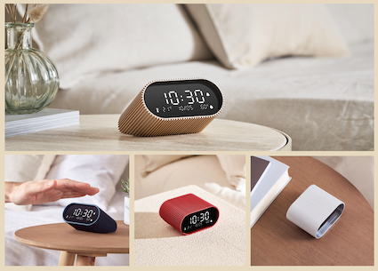 En toute simplicité, il suffit de basculer le réveil sur sa base pour le désactiver et de le redresser pour l’activer. Ray Clock propose un large choix de mélodies et de sons naturels pour se réveiller en douceur. Son mode nuit permet de dormir sereinement, sans être dérangé par la lumière de l’écran.
