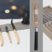 Parmi les modèles phares, les séries 5000 MCD ou 7000D, aux designs raffinés et aux finitions damassées. Sans oublier la série conçue avec le coutelier américain Bob Kramer, élu l’un des rares « Maîtres Forgerons » certifiés par l’American Bladesmith Society. Ce modèle hautement technique ne peut être fabriqué que par les artisans les plus aguerris de Miyabi, seule usine au monde à avoir su répondre aux exigences drastiques de son concepteur.