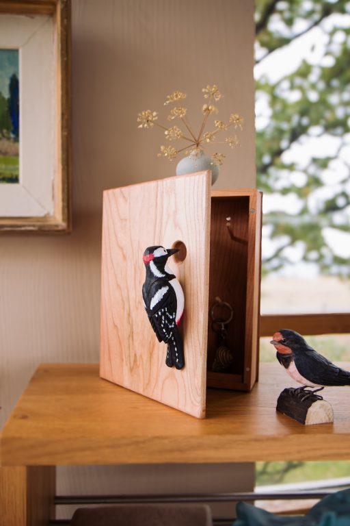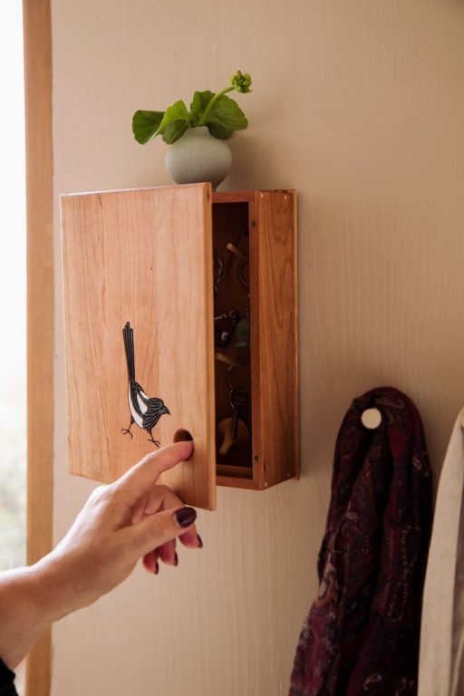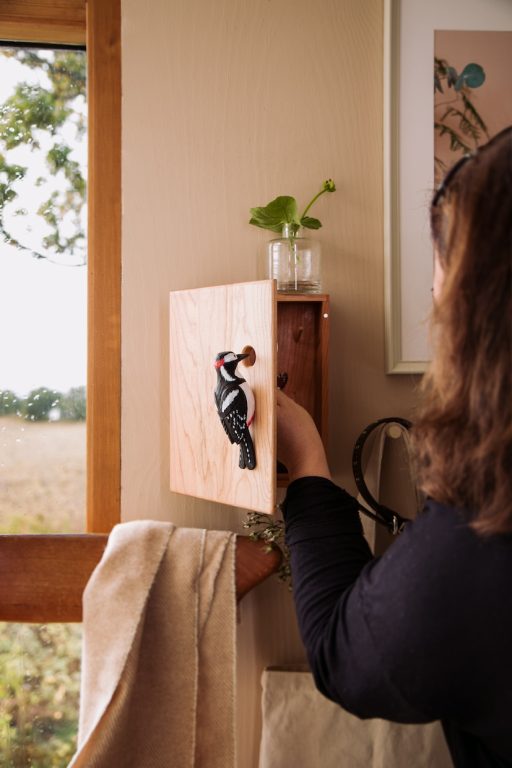 Réalisées grâce à un savoir-faire artisanal, ces coffrets se déclinent actuellement en deux modèles : la pie et le pic. Les motifs d’oiseaux, peints à la main avec de la peinture à l’eau, ajoutent une touche artistique et délicate.